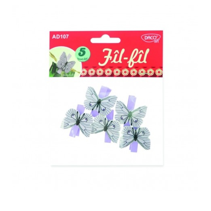 Setul contine 5 bucati fluturasi din lemn culoare lila. Dimensiuni 35 x 35 cm.