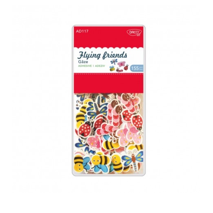 Cutia contine 155 de bucati. Modele fluture albina, buburuza, libelula, omida. Dimensiuni variate.