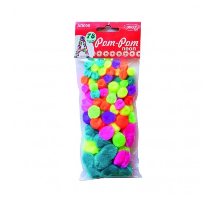 Setul contine 78 de bucati bile de plus pom pom culori neon. Dimensiuni variate