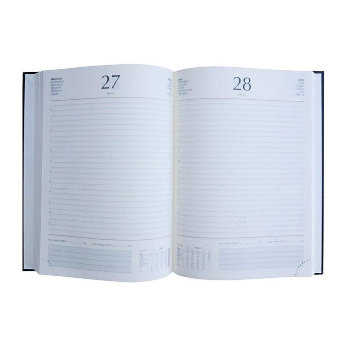 Pentru fiecare zi lucratoare este dedicata o pagina (zilele de sambata si duminica sunt impreuna pe o singura pagina)