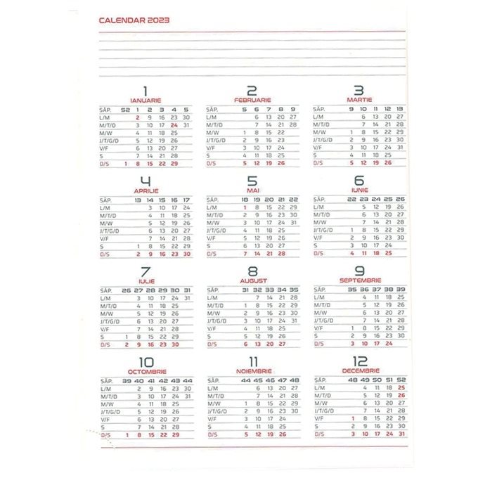 Calendar 2023 pentru planificari (o pagina la inceputul agendei)