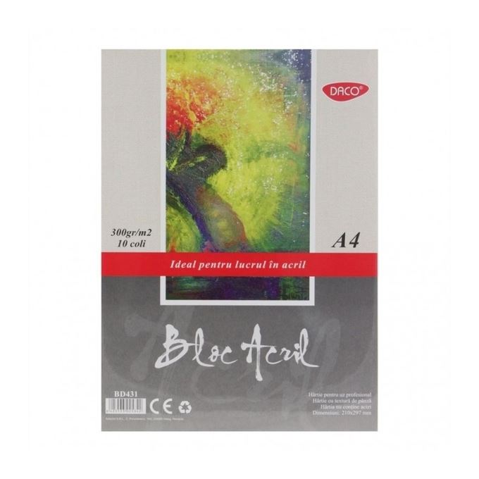 Bloc desen format A4, Acrilic, 10 file, 300g/mp, marca Daco, pentru culori acrilice, cu hartie de 300 g/mp, avand 10 file.