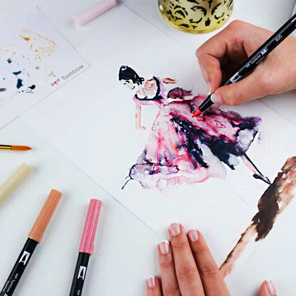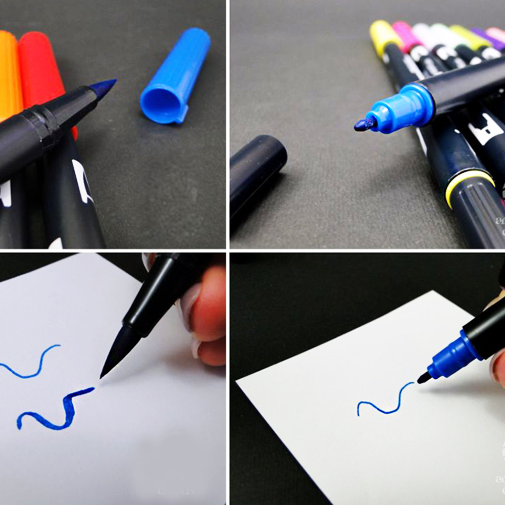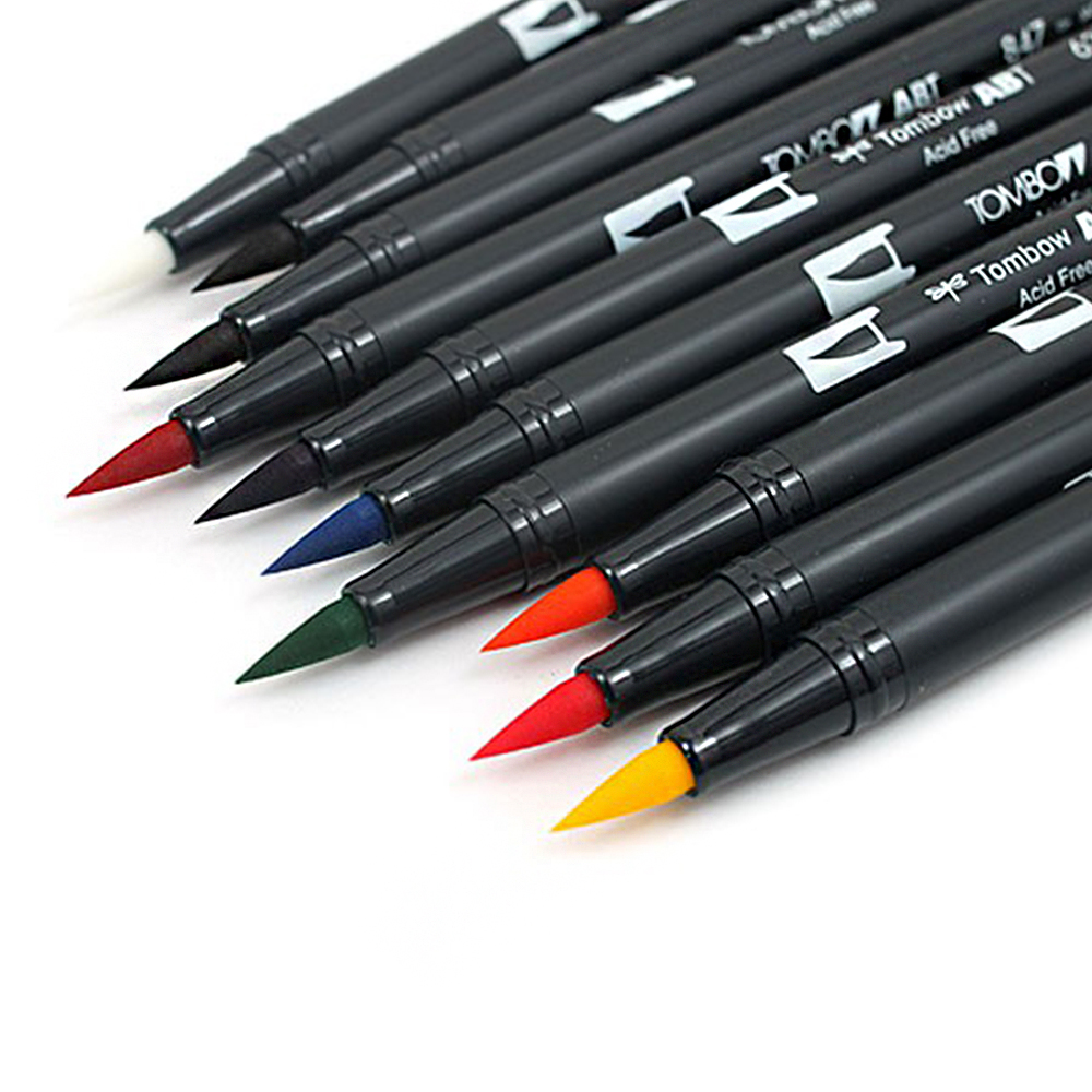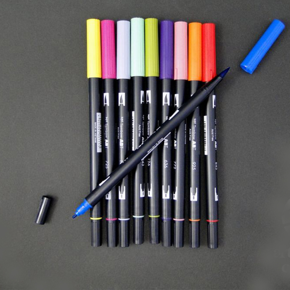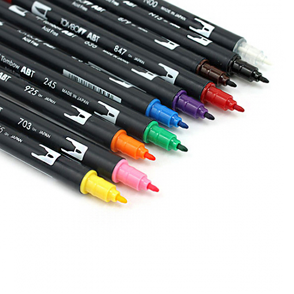 Markerele Tombow Dual-Brush reprezinta o gama de produse combo cu dubla functie, extrem de versatile, concepute special pentru artisti, oferindu-le acestora o varietate extrema de utilizari: felicitari “hand-made”, stampile, schite, caricaturi, tablouri acuarela, etc. El este instrumentul ideeal ce ii ajuta sa-si transpuna creativitatea (limitata doar de imaginatia lor) pe o multime de suporturi. Gama Dual Brush (cod ABT) este disponibil in 96 de nuante si culori, iar cerneala din interiorul sau este pe baza de apa tip acuarela (tehnologie acid free), non toxica, inodora si rezistenta la lumina.