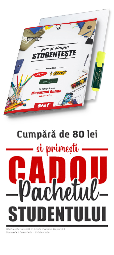 In aceasta toamna Stef Iasi vine in sprijinul Studentilor cu o super promotie: cumpara in valoare de 80 lei din oricare dintre centrele noastre participante la promotie, iar noi te rasplatim oferindu-ti CADOU un pachet promotional special compus pentru studenti.