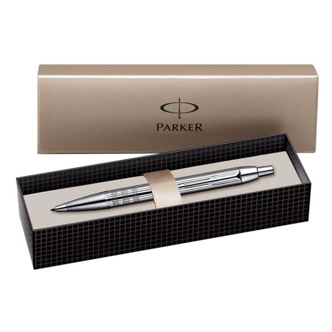 Pix placat cu crom, si mina pix Parker. Corp din alama cizelat cu model liniar grid placat cu crom Grip din otel inoxidabil sablat placat cu crom Gama IM cu linii simple, bine definite si finisaje de calitate. Combinate cu siguranta functionalitatii specifice tuturor instrumentelor PARKER confera utilizatorului stil, modernitate si simplitate.