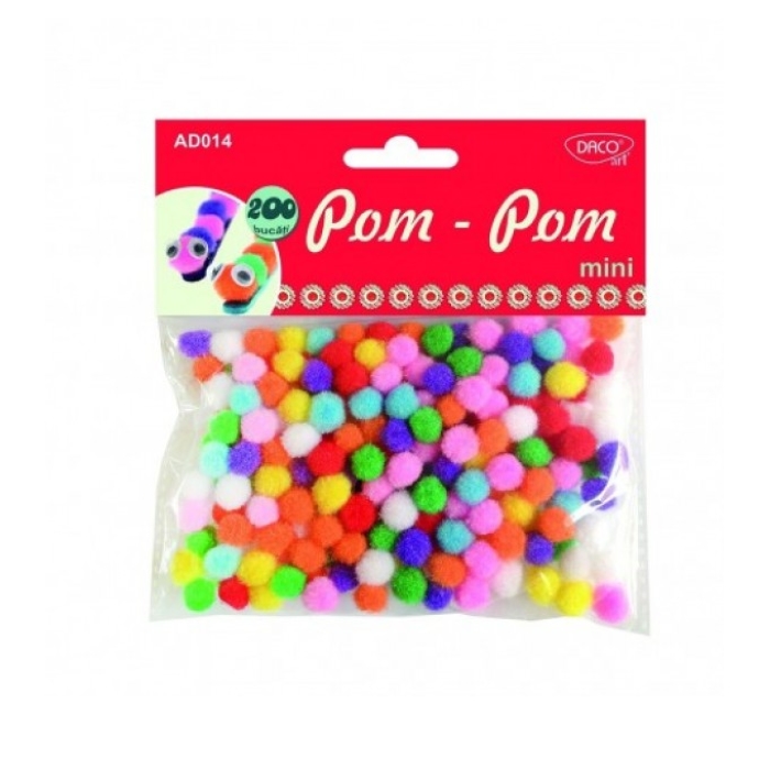 Pom pom mini, marca Daco de 10 mm, 200 buc. pe set.