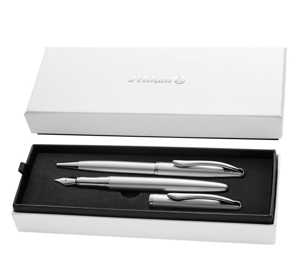 Setetul stilou si pix Pelikan combină nobilul stilou Jazz Noble Elegance și pixul. Aceasta serie se caracterizeaza prin liniile sale cuprinzatoare, care par usoare si pline de viata.